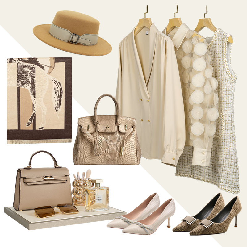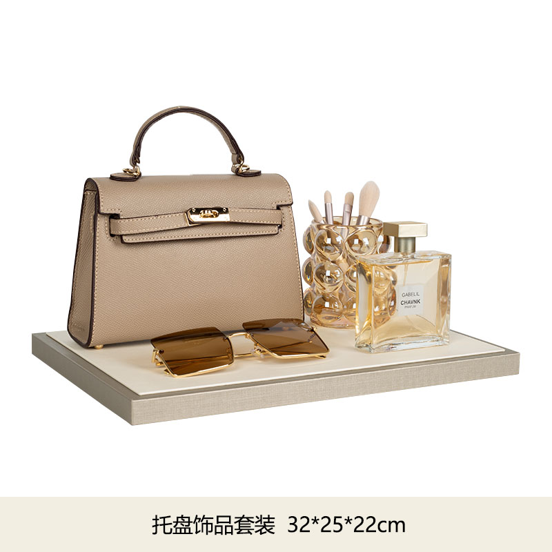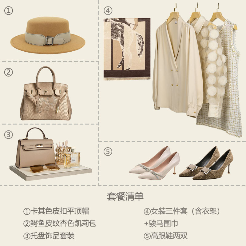 【轻奢女士衣柜】样板房衣帽间摆件米杏色包包衣服连衣裙软装饰品