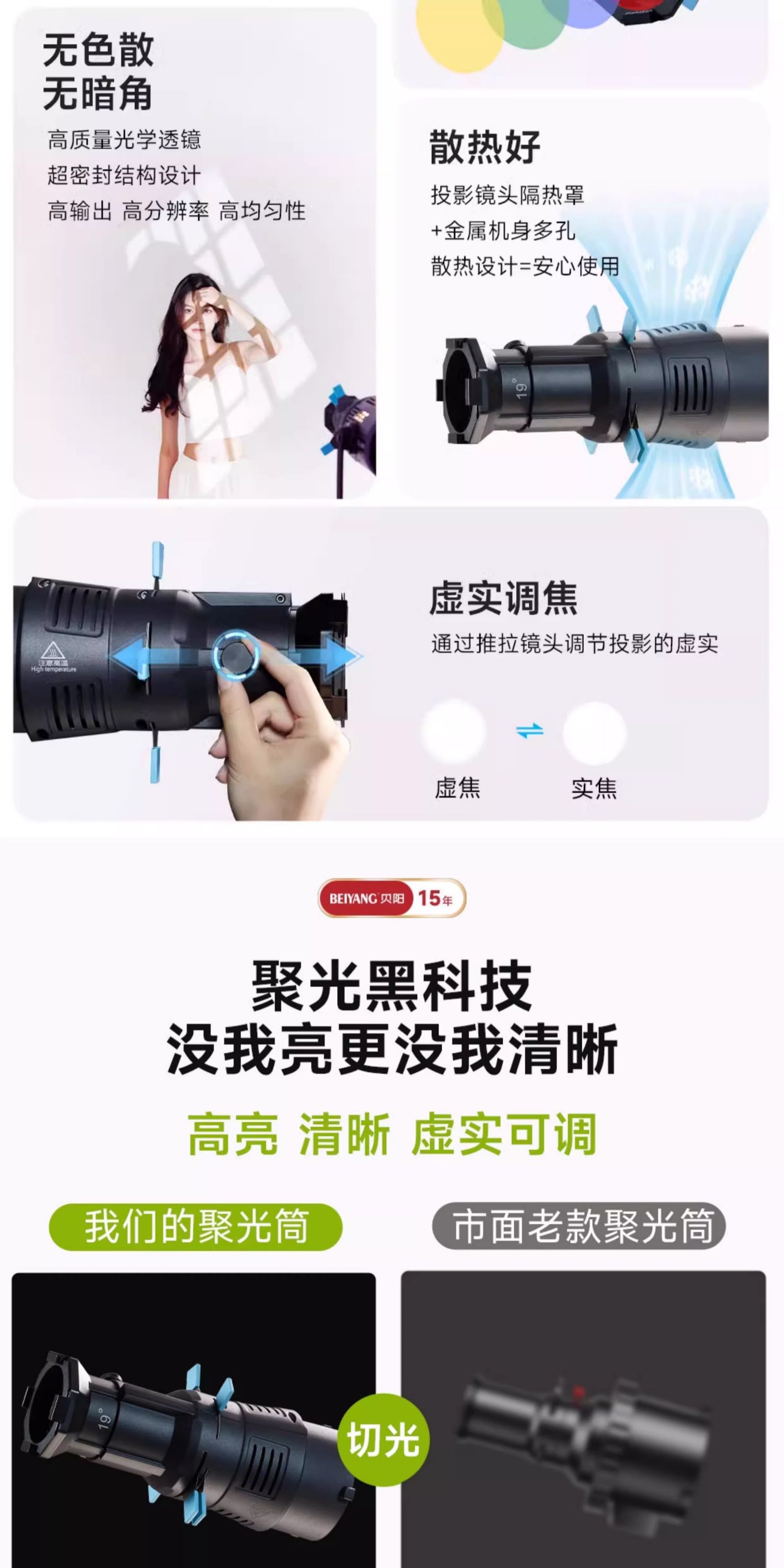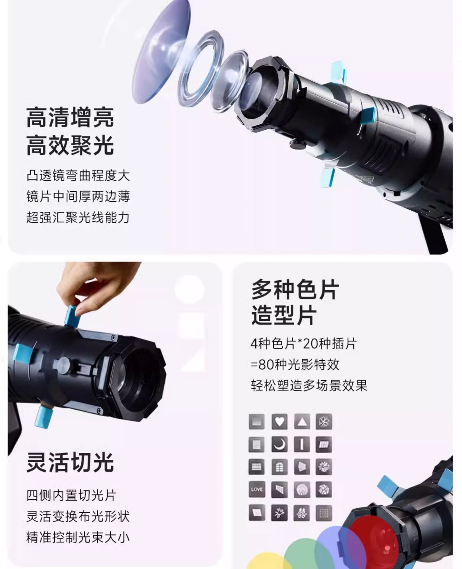 贝阳摄影聚光筒调焦束光筒保荣卡口切光筒切片控光成像镜头猪嘴聚光筒造型灯LED摄影灯投影插片闪光灯造型片