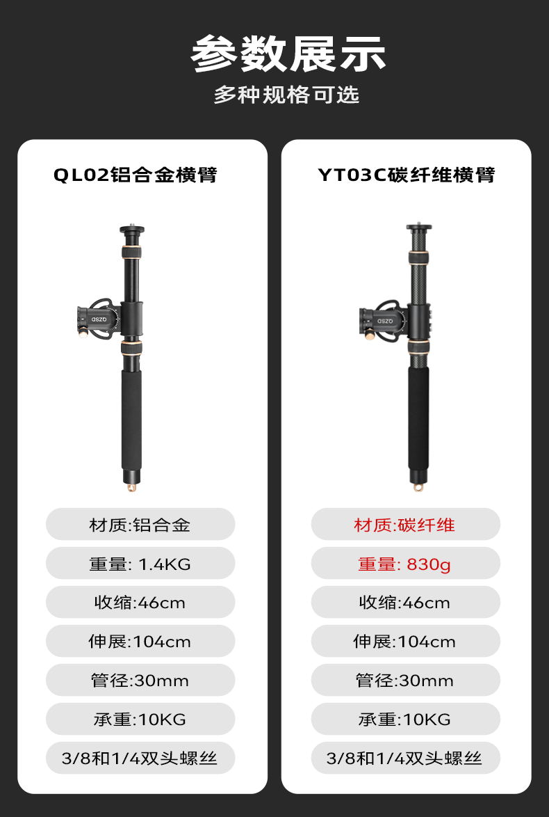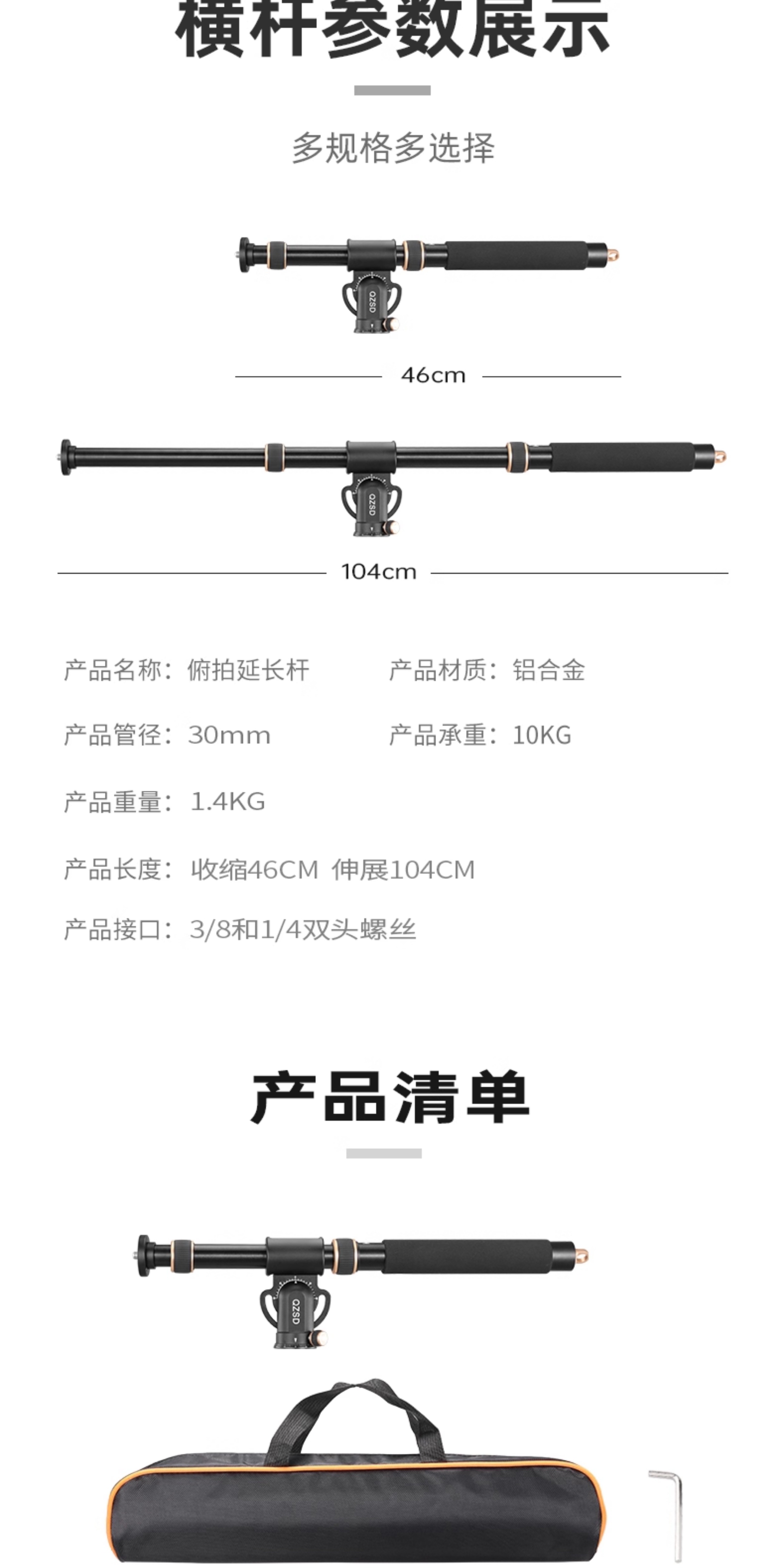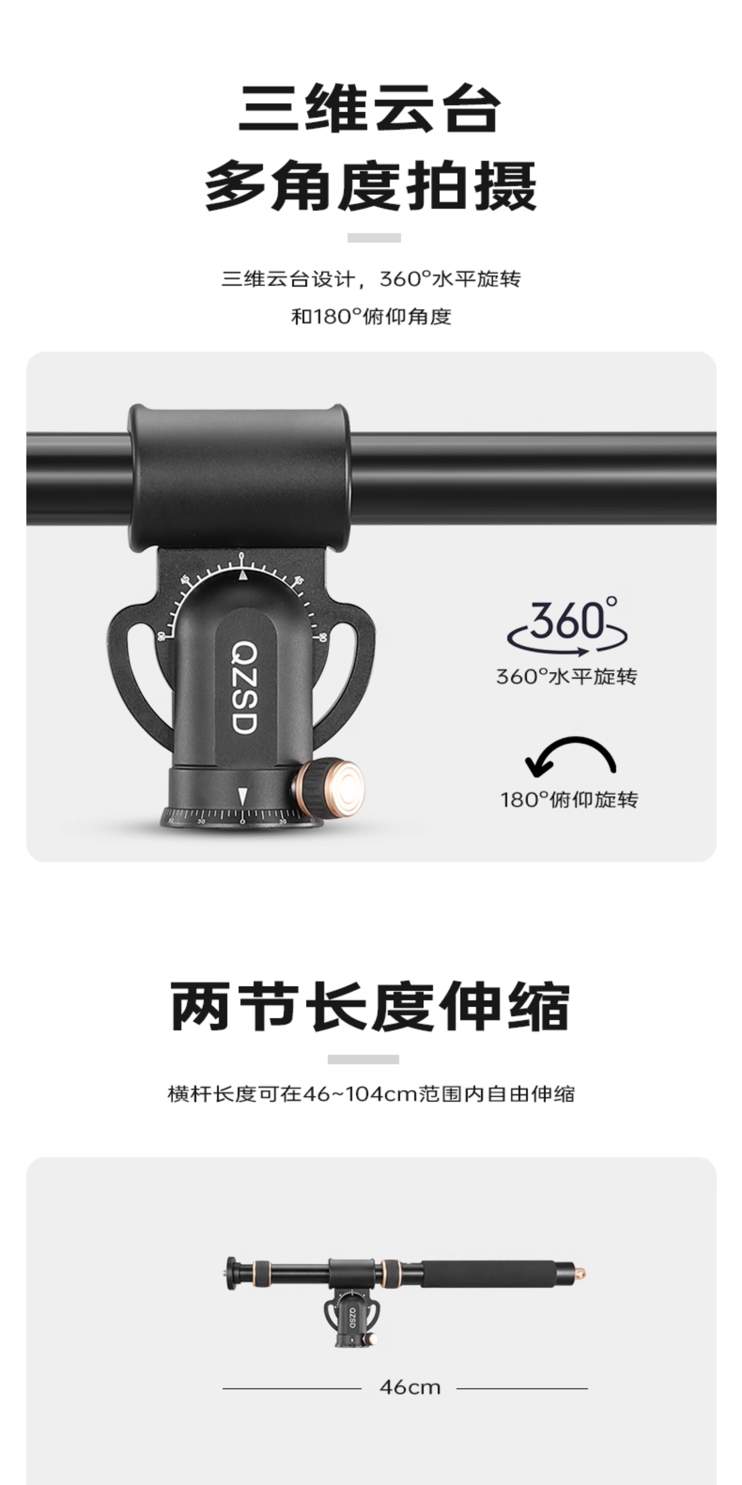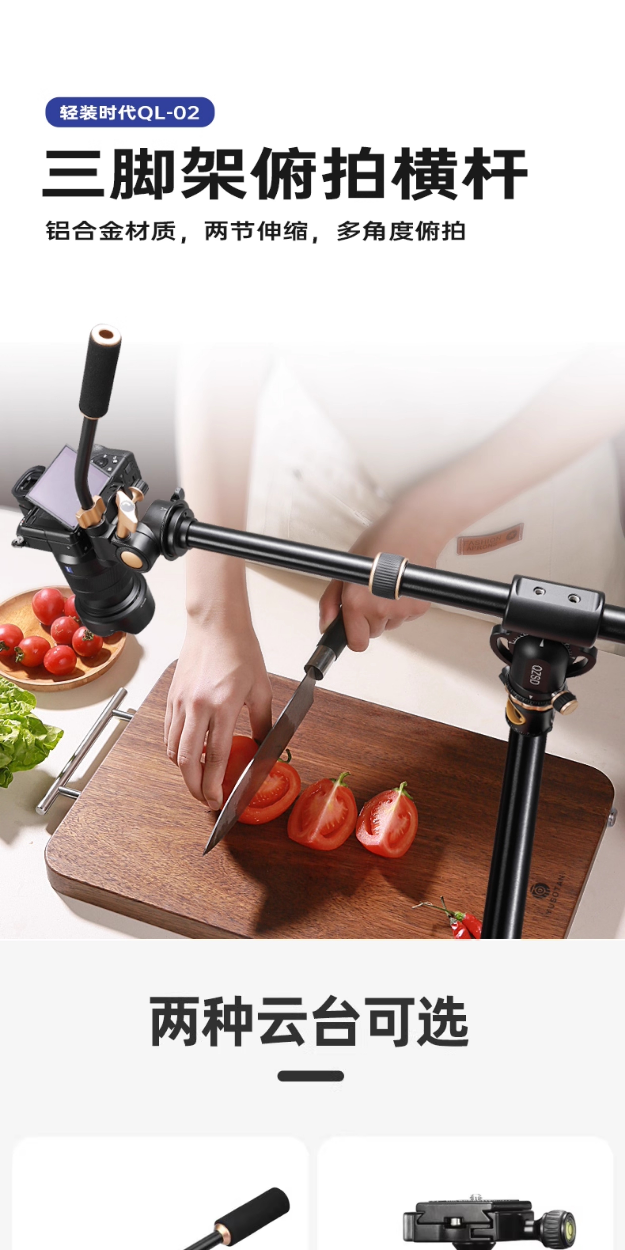 轻装时代QL02 相机俯拍横杆 三脚架摄影俯拍横臂美食拍照视频垂直拍摄手机翻拍三脚架延长杆支架